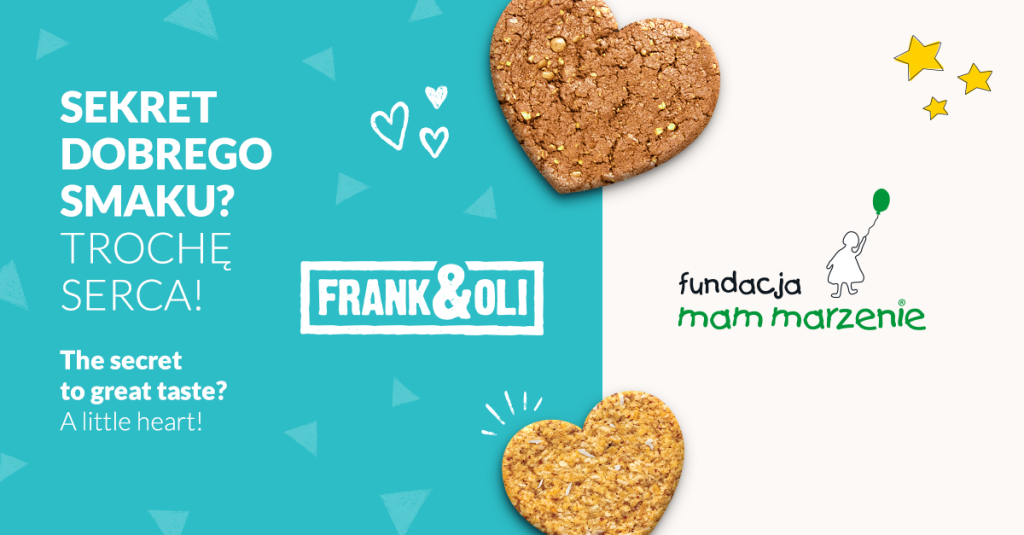Z ogromną radością ogłaszamy, że marka Frank&Oli została nowym partnerem Fundacji Mam Marzenie. Od teraz ich pyszne, naturalne ciasteczka będzie można spotkać na naszych wydarzeniach i eventach charytatywnych, ku radości małych i dużych uczestników!