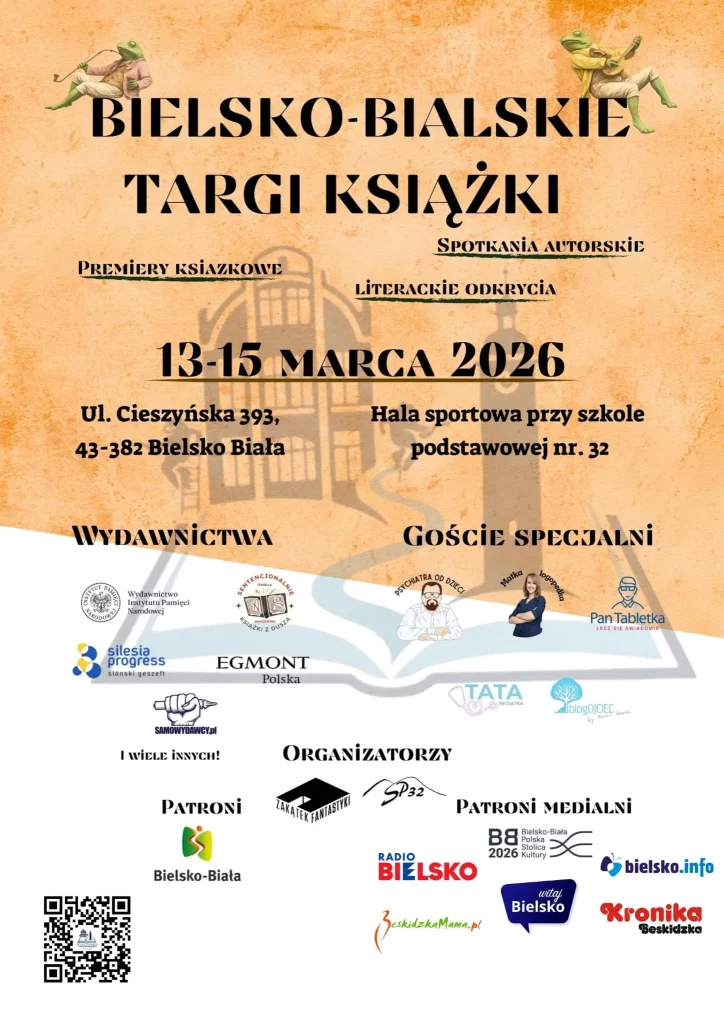 W dniach 13–15 marca 2026 r. w Bielsku-Białej odbędzie się pierwsza edycja Bielskich Targów Książki. Wydarzenie zaplanowano w hali sportowej przy Szkole Podstawowej nr 32 przy ul. Cieszyńskiej 393, a wstęp dla odwiedzających jest bezpłatny. Podczas trzech dni targów czytelnicy będą mogli odwiedzić stoiska wydawnictw, spotkać autorów, wziąć udział w spotkaniach autorskich, panelach dyskusyjnych i wydarzeniach towarzyszących poświęconych literaturze i kulturze.