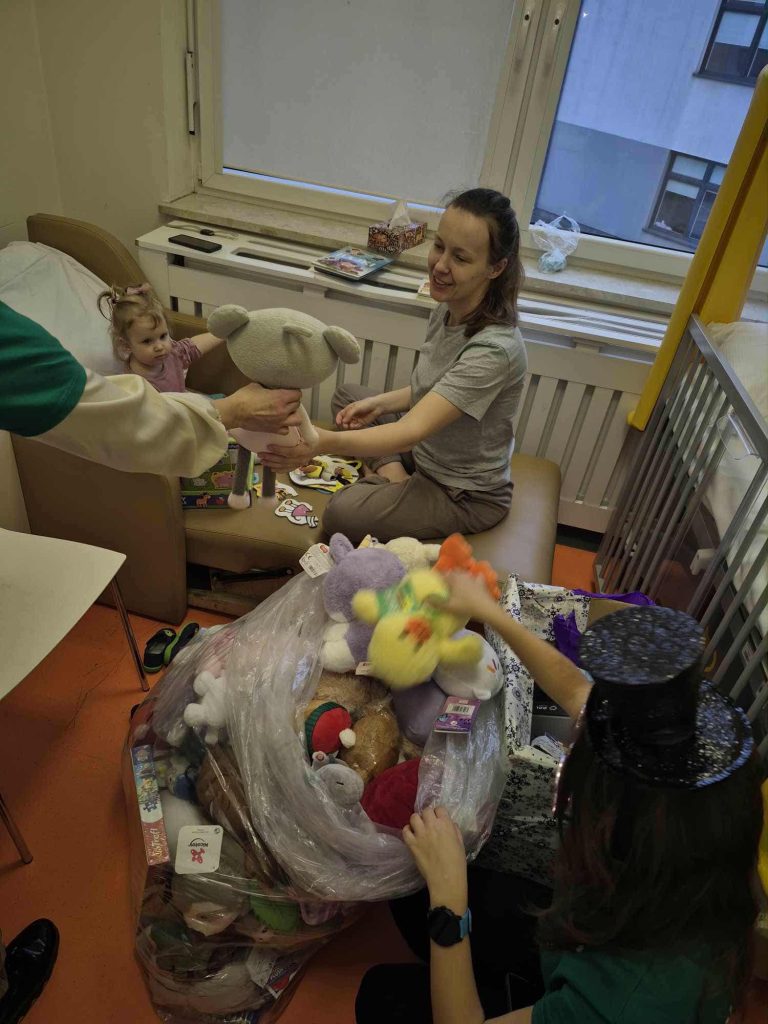 W tym samym czasie nasza druga ekipa walczyła dzielnie na pediatrii. Prezentów było tak dużo, że… szpital nie zdołał przyjąć wszystkiego. I dzięki temu dobro popłynęło dalej, do dzieci z kolejnych dwóch placówek opiekuńczych. Ten dzień był wszystkim naraz — wzruszeniem, radością, zadumą, zmęczeniem, wdzięcznością. Ale przede wszystkim był dowodem na to, że ludzie razem potrafią zrobić coś absolutnie niezwykłego.