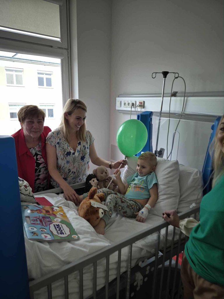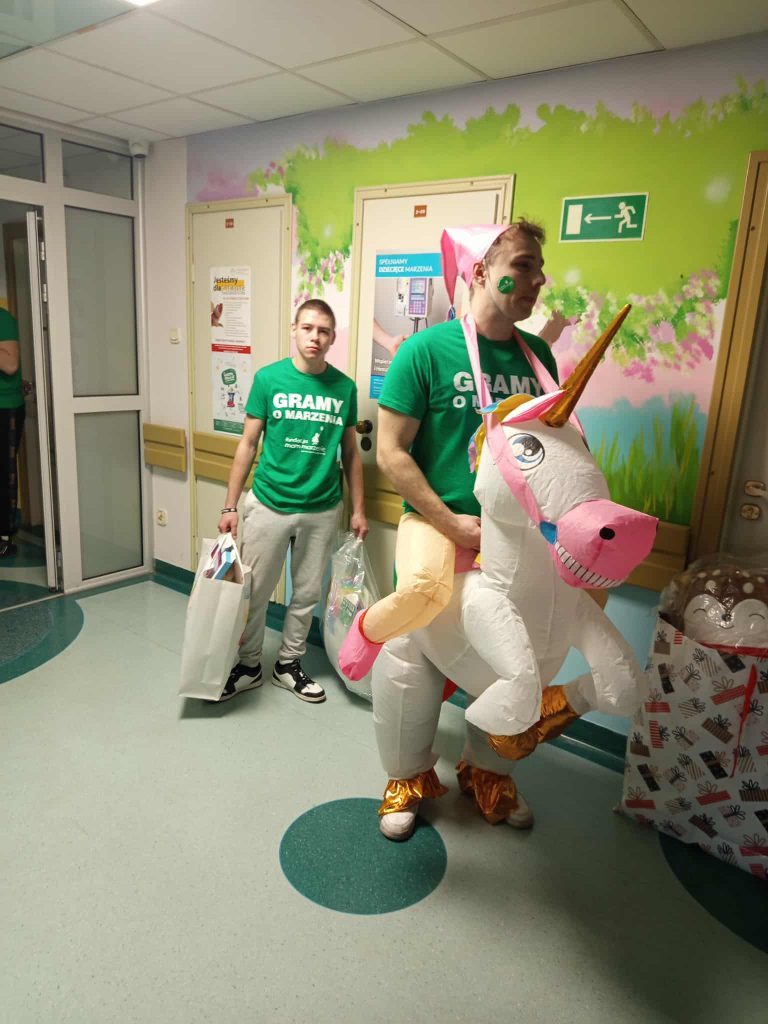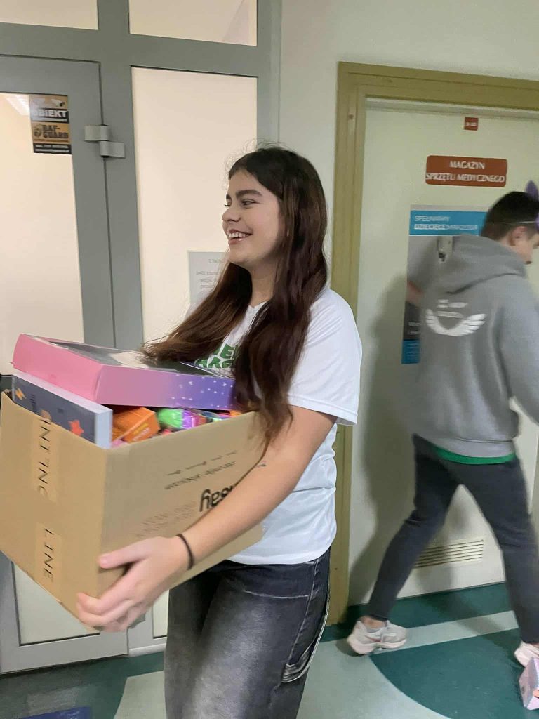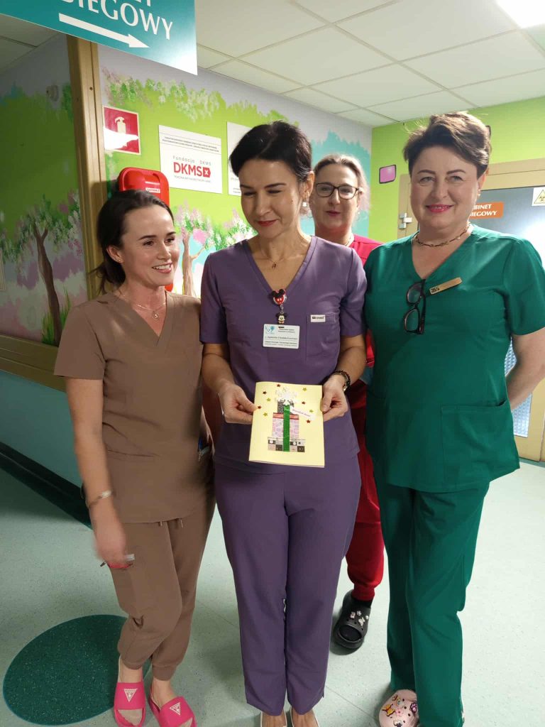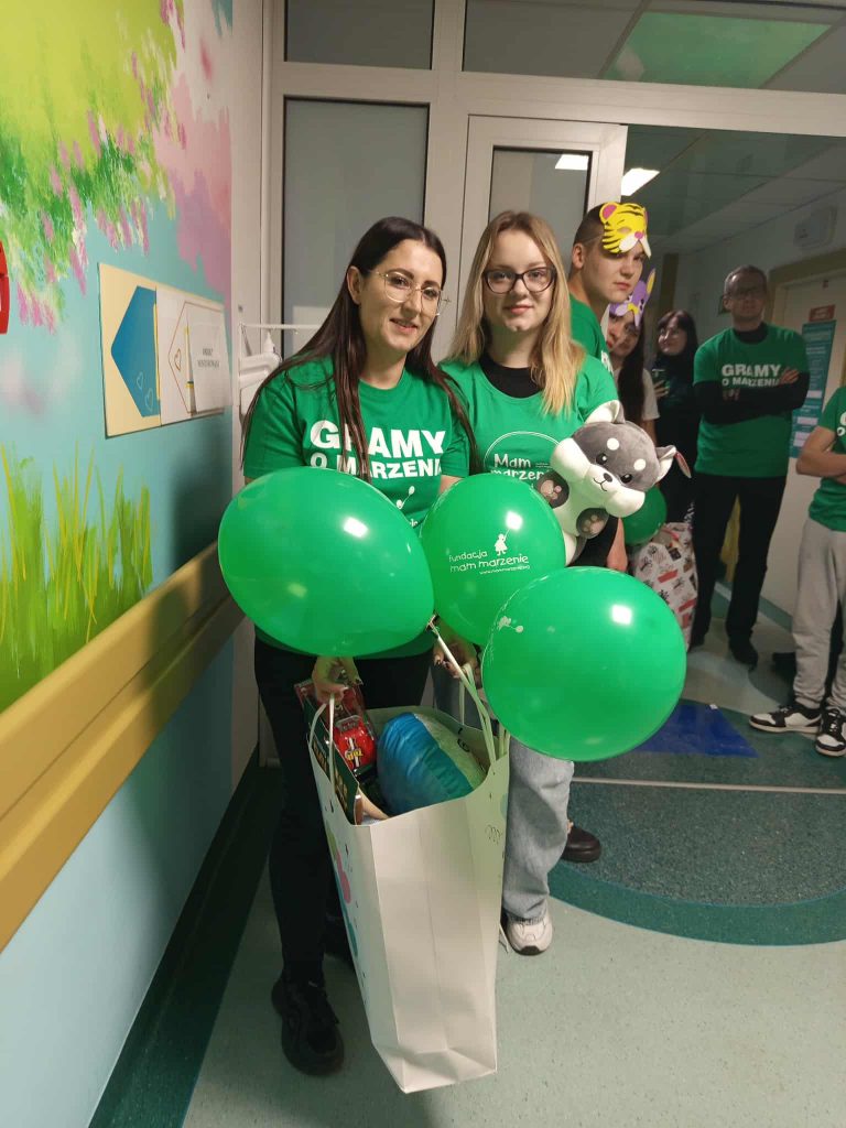 Na oddziale dziecięcej onkologii przekazaliśmy małym pacjentom indywidualne prezenty szykowane dzień wcześniej dla konkretnych dzieci. I to właśnie tam wydarzyły się te „małe cudy”, których nie planuje się w harmonogramie: rozmowy, które poruszają bardziej, niż człowiek się spodziewa, – uśmiech dziecka, które jeszcze sekundę wcześniej było nieśmiałe, wdzięczność rodziców, której nie da się opisać, personel, który z życzliwością jak z innego świata pomaga w każdym kroku. A kiedy w nasze ręce trafiła przepiękna, ręcznie wykonana laurka… nasze wzruszenie sięgnęło zenitu. Poczuliśmy, że dzieci naprawdę na nas czekały. Potem zeszliśmy o jedno piętro — a jakby do zupełnie innego świata: oddział endokrynologiczny, kolejne dzieci, kolejne historie, kolejne emocje. Dalej zawieźliśmy prezenty do dwóch placówek opiekuńczo – wychowawczych i dziecięcego szpitala psychiatrycznego, gdzie drobny gest potrafi rozjaśnić cały dzień.