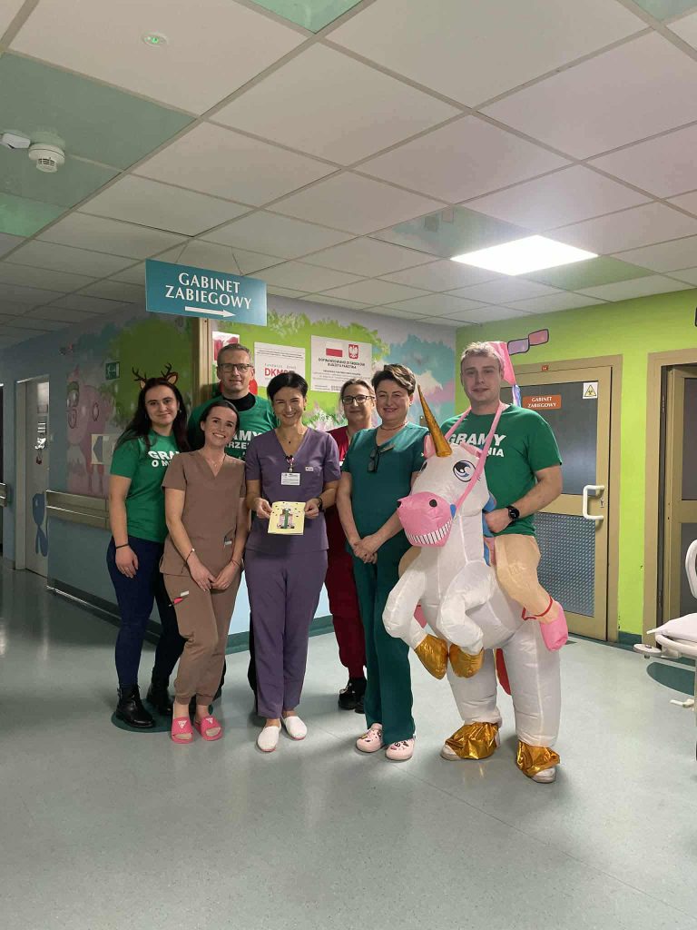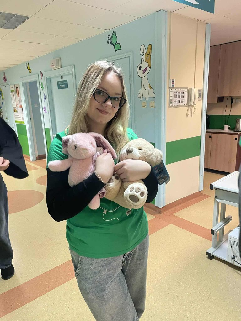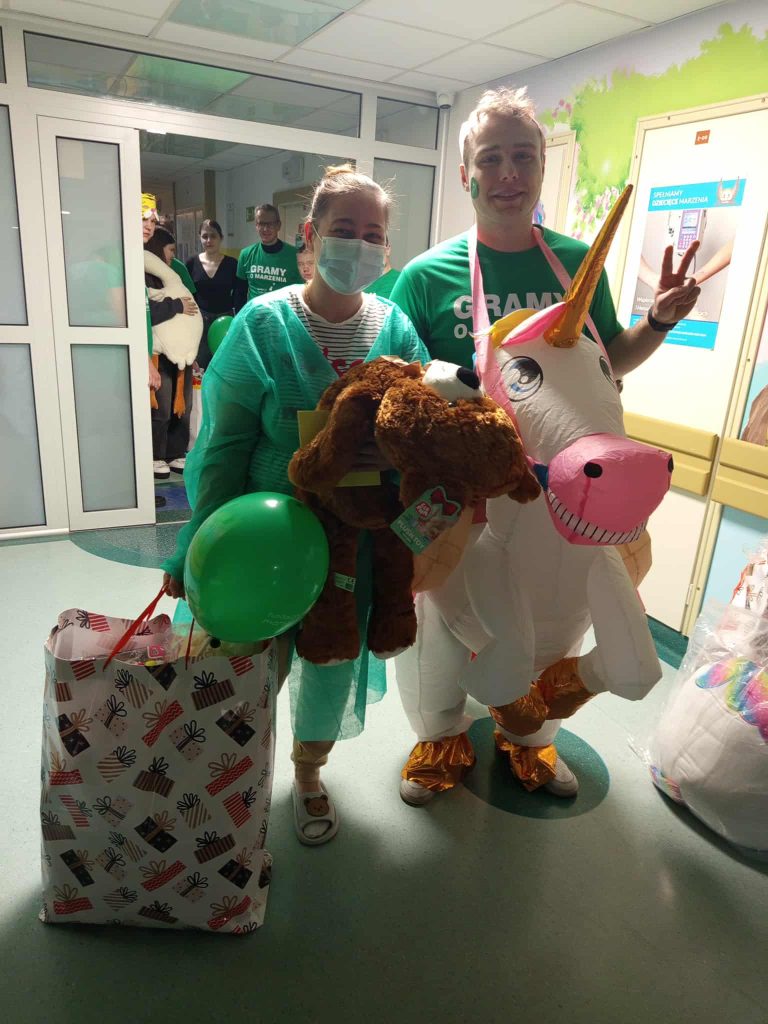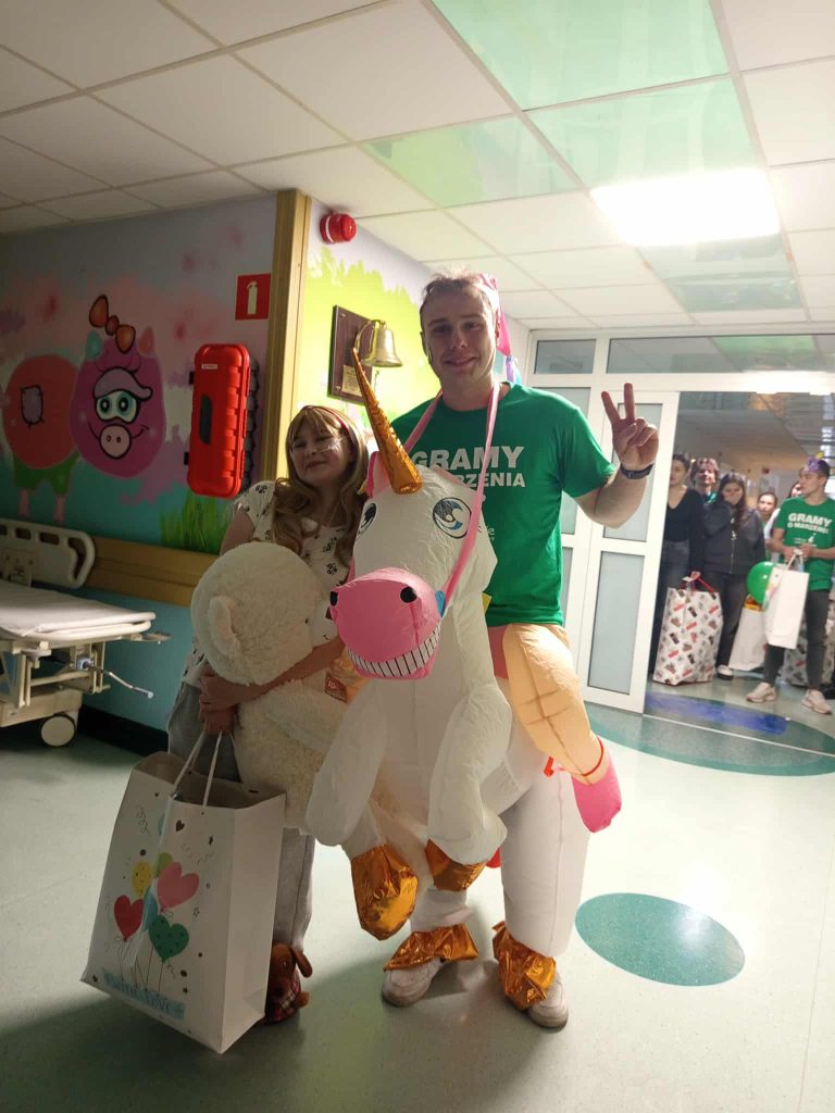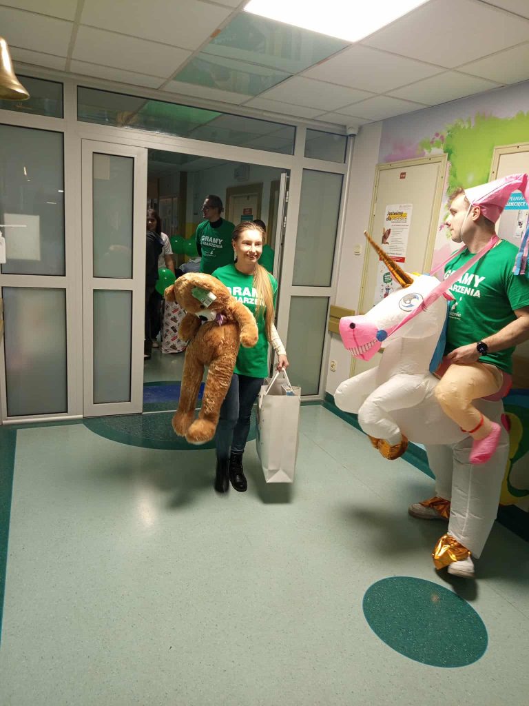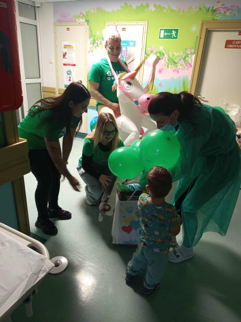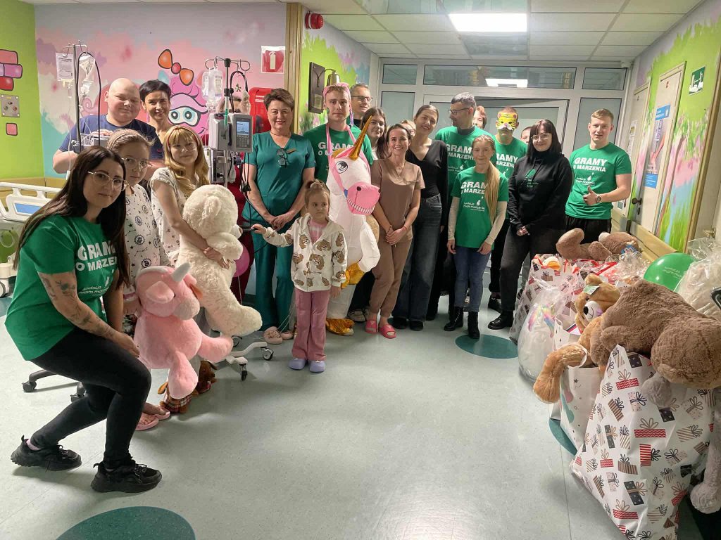 Osiem wypakowanych po dach samochodów ruszyło przed południem w stronę szpitala. W środku — setki pluszaków, kolorowych zestawów plastycznych, gier, puzzli, zabawek… Ale prawda jest taka, że jechaliśmy z czymś znacznie ważniejszym. Z intencją, żeby każde dziecko, które dziś otworzy oczy w szpitalnym łóżku, poczuło, że świat o nim pamięta. Kiedy całą ekipą stanęliśmy pod onkologią dziecięcą, była w nas mieszanka wzruszenia, stresu, ekscytacji i poczucia misji. Zrobiliśmy tam wspólne zdjęcie, a następnie podzieliliśmy się na dwie drużyny, aby zanieść pluszaka, nadzieję i uśmiech każdemu dziecku.