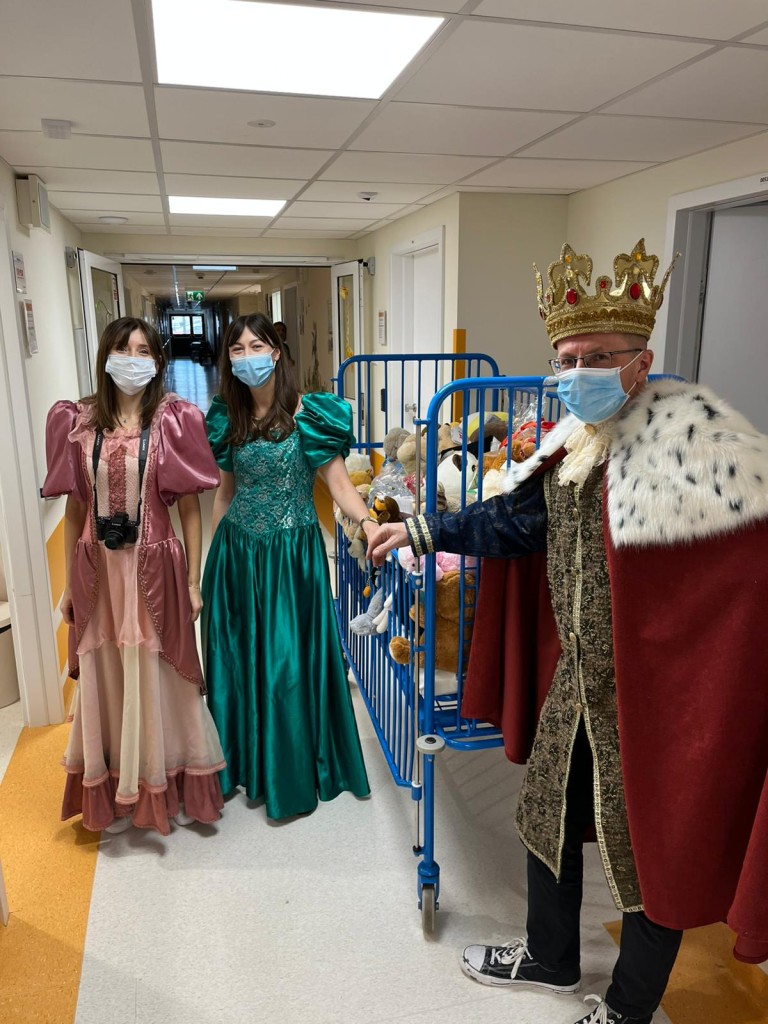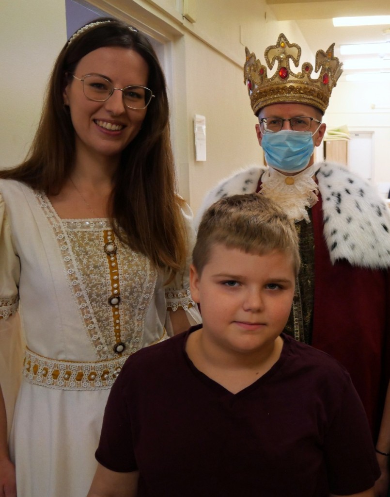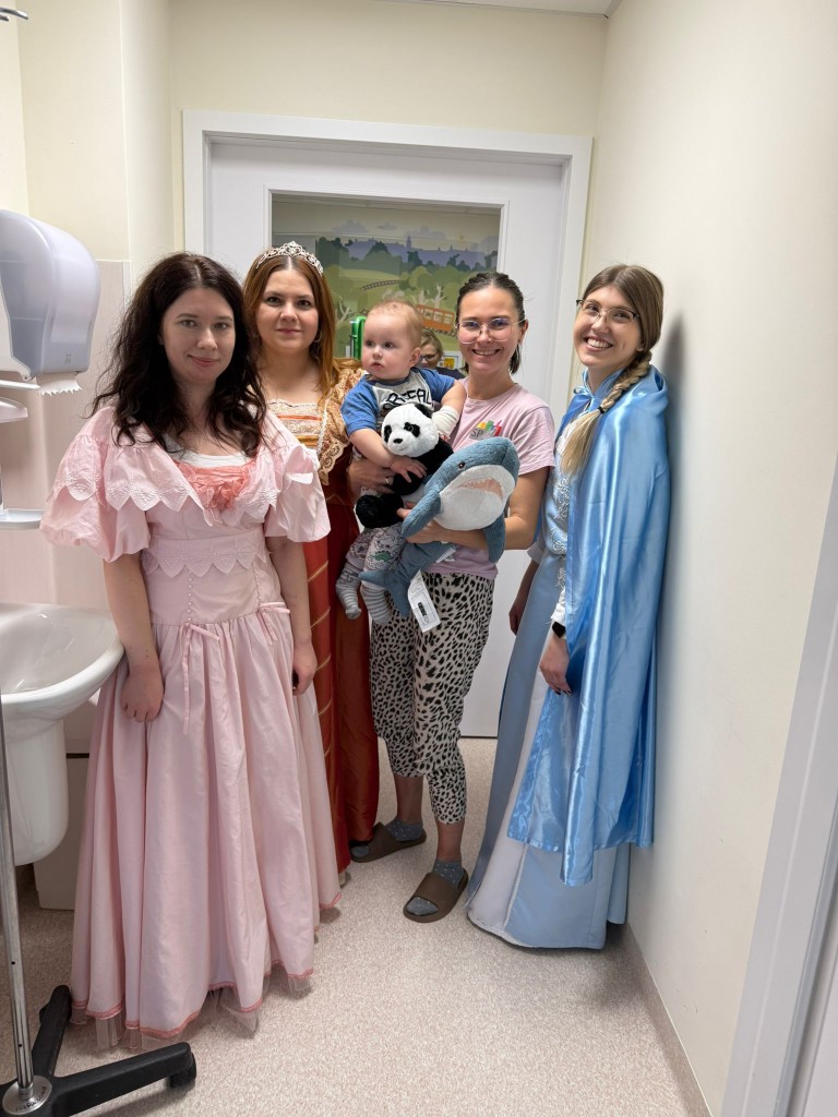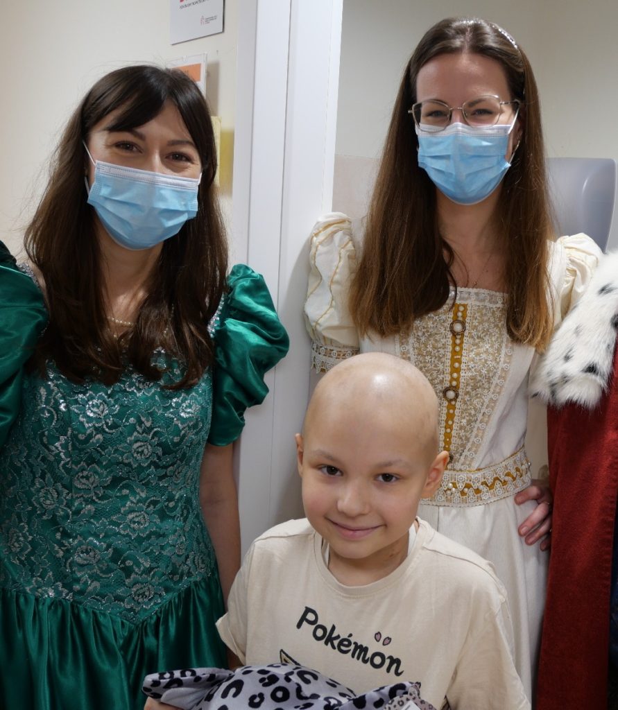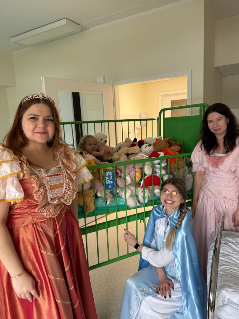 W tym roku postanowiliśmy odwiedzić dzieci w wyjątkowej, bajkowej odsłonie. Wolontariuszki zamieniły się w księżniczki przebrane w suknie pełne cekinów, tiuli, błyszczących falban i koronek. A w tak szlachetnym towarzystwie oczywiście nie mogło zabraknąć Króla! W królewskich pelerynie i koronie majestatycznie przemierzał szpitalne korytarze, wywołując szerokie uśmiechy na twarzach małych pacjentów. Dzieci reagowały cudownie–robiły sobie z nami zdjęcia, przytulały się, przybijały piątki i nie mogły uwierzyć, że taka bajkowa niespodzianka spotkała je właśnie dziś.