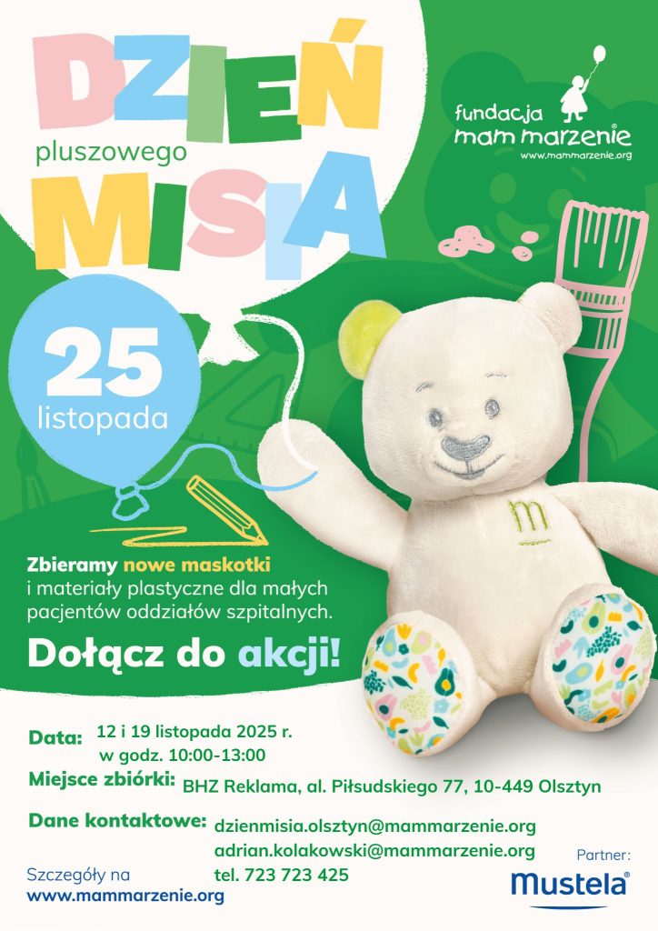 Z tej okazji oddział Olsztyn zaprasza do udziału w akcji zbiórki pluszaków dla pacjentów Wojewódzkiego Specjalistycznego Szpitala Dziecięcego w Olsztynie.