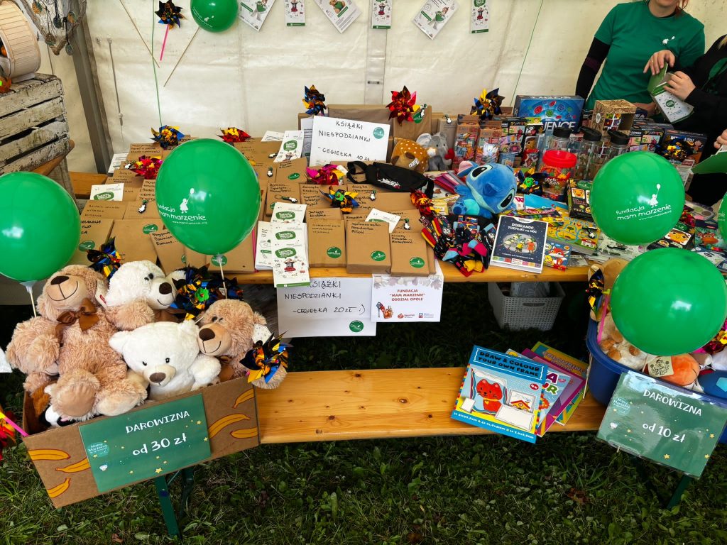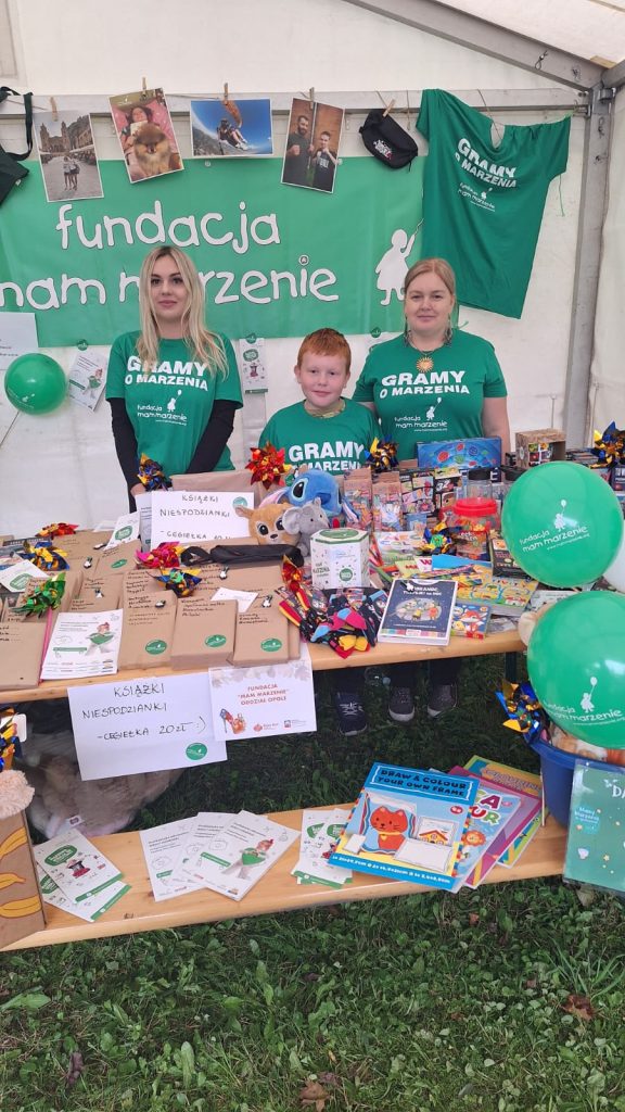 Na stoisku Fundacji czekało wiele wyjątkowych atrakcji. Dużym zainteresowaniem cieszyły się „książki niespodzianki”- każda zapakowana w brązowy papier i opisana trzema słowami, które sugerowały, co może kryć się w środku. Nie zabrakło również zabawek, gier i drobiazgów dla najmłodszych, z których dochód przeznaczono na cele charytatywne. Dzięki zaangażowaniu wolontariuszy i hojności uczestników udało się zebrać środki, które pomogą w realizacji dziecięcych marzeń.