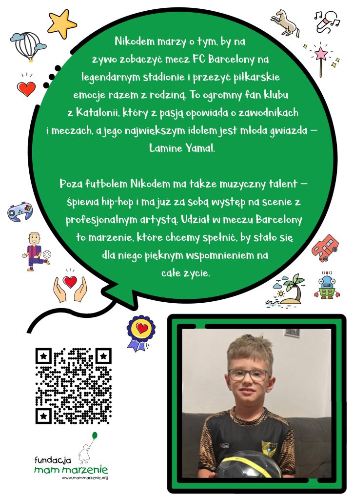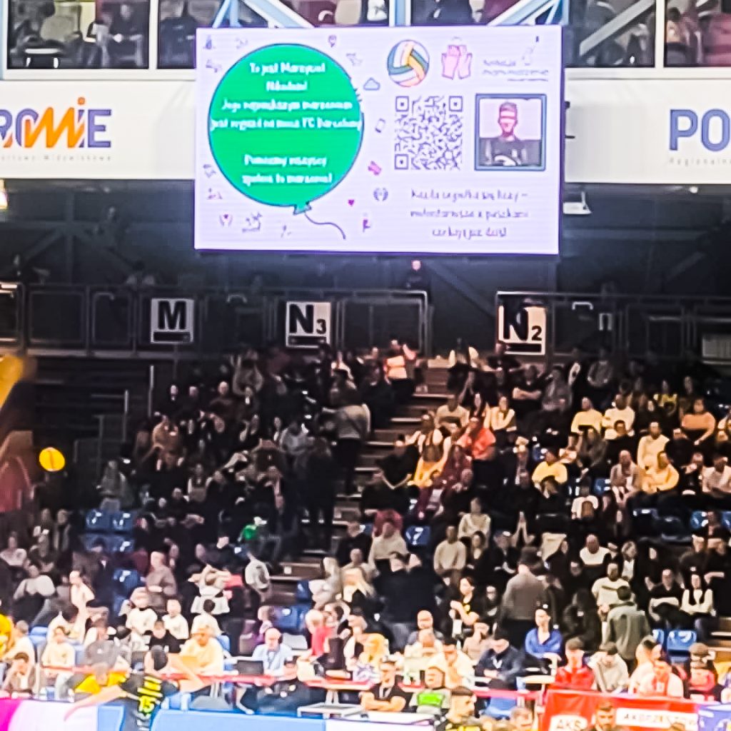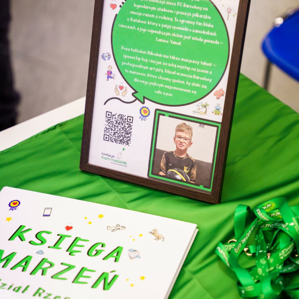 Nasze zielone stoisko stanęło w holu hali, gdzie uśmiechnięci wolontariusze FMM zachęcali kibiców do wsparcia zbiórki. Cel był jeden i bardzo ważny – spełnienie marzenia naszego wspaniałego Marzyciela, Nikodema. Co ciekawe, Nikodem również ma sportowe marzenie – marzy o wyjeździe na mecz FC Barcelony. A jak wiadomo, kibice doskonale rozumieją sportowe marzenia! Jedna z osób wrzucających datek powiedziała nam nawet, że… też kibicuje Barcelonie ❤️
