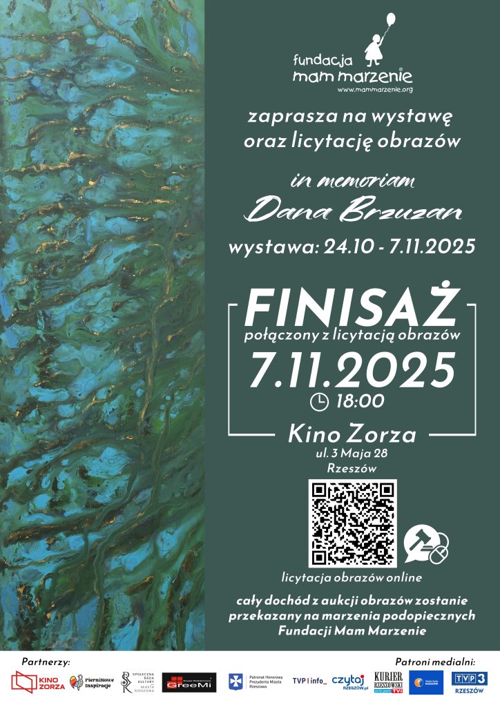 Od 24 października do 7 listopada w przestrzeniach Kina Zorza w Rzeszowie można podziwiać wyjątkową wystawę obrazów Danuty Brzuzan – wolontariuszki Fundacji Mam Marzenie, artystki z pasją i sercem na dłoni, która odeszła w lipcu 2025 roku.