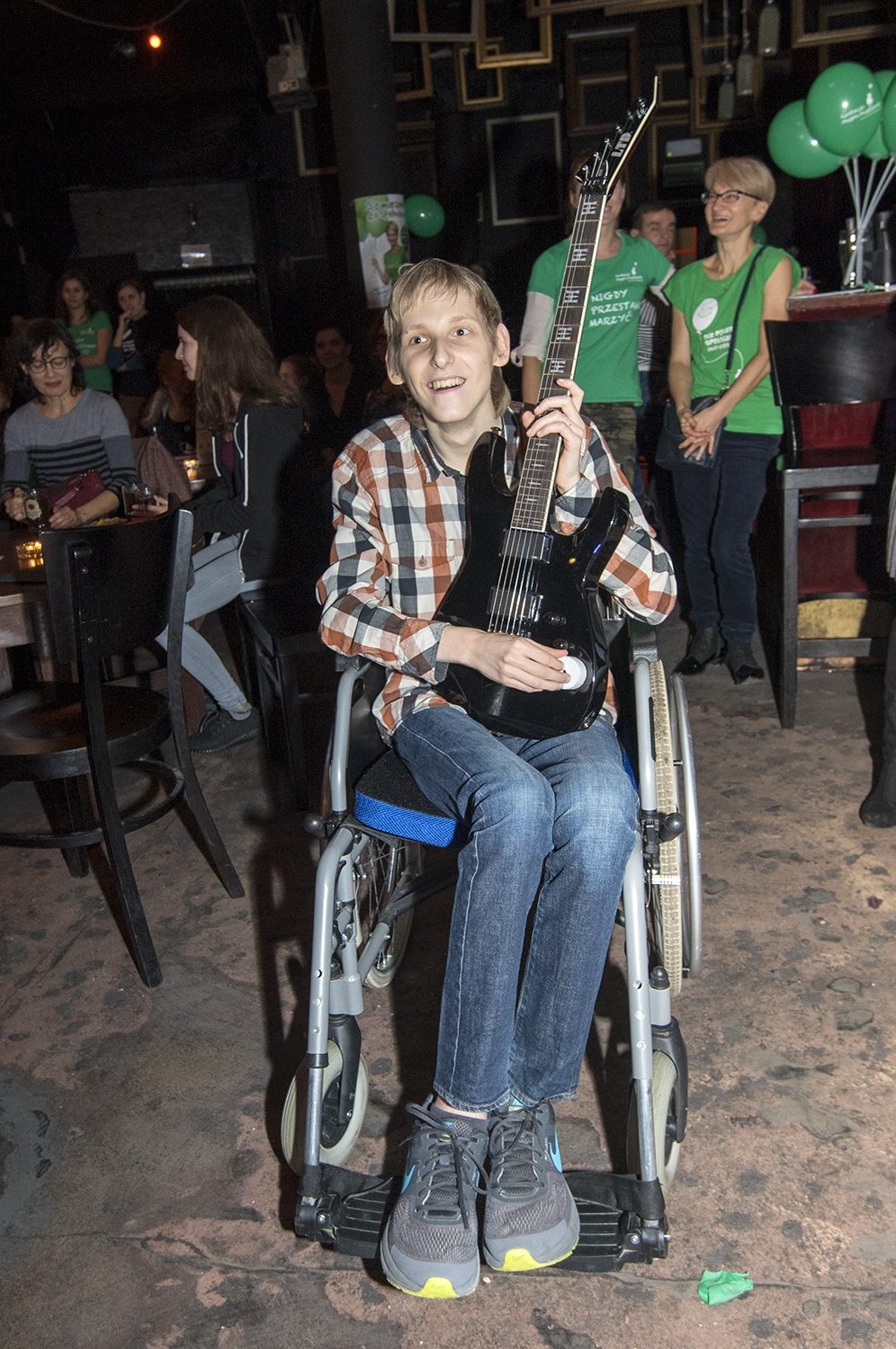 Tuż po występie Beniamina miał miejsce najbardziej wzruszający moment całego wieczoru. Krysia, wolontariuszka wrocławskiego oddziału FMM, opowiedziała, jak spełniliśmy marzenie Beniamina, a następnie przedstawiła gościa specjalnego koncertu – Marcina. To Podopieczny, również marzący o gitarze elektrycznej. I wtedy głos zabrał właśnie Marcin. Zaczął opowiadać o swoim marzeniu i w sposób naturalny nawiązała się rozmowa pomiędzy nim a Beniaminem. Rozmowa o muzyce i gitarach tak połączyła chłopaków, że nie przeszkadzało im to, iż widzą się pierwszy raz w życiu. Po chwili rozmowy wolontariuszka życzyła Marcinowi szybkiego spełnienia marzenia i wówczas Ben, jak nazwał Beniamina Marcin, powiedział, że ma dla niego niespodziankę. Zza perkusji przyniósł wielkie opakowanie, które skrywało GITARĘ ELEKTRYCZNĄ. Tak – to był właśnie TEN dzień – dzień spełnienia marzenia Marcina! To była MAGIA przez duże M!
