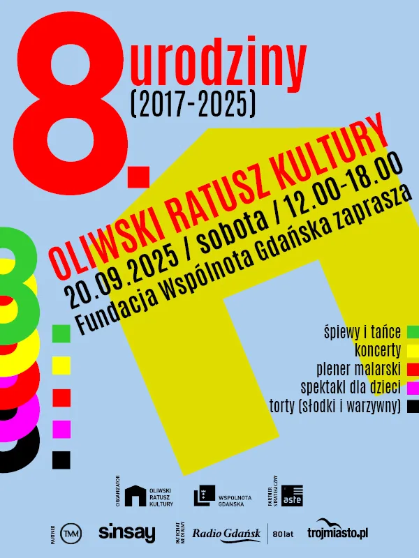 Kochani, serdecznie zapraszamy Was do udziału w niezwykłym wydarzeniu – 8. urodzinach Oliwskiego Ratusza Kultury, które odbędą się 20 września 2025 roku w godzinach 12:00-18:00 ul. Opata Jacka Rybińskiego 25 w Gdańsku. Program: 12.00 – 12.30 powitanie gości, gra Kapela z Kwietniej,12.00 – 13.00 spektakl teatralny dla[...]