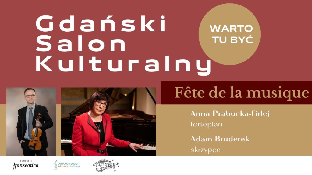 Kochani, serdecznie zapraszamy Was na koncert „Fête de la musique” w ramach projektu Gdański Salon Kulturalny – warto tu być organizowany przez Fundację Hanseatica – 28 września o 16:00 w Oblackim Centrum Edukacji i Kultury (ul. Elżbietańska 9, 80-894 Gdańsk). Wystąpią: Adam Bruderek / skrzypce, Anna Prabucka – Firlej[...]