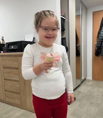 zaszczyt uczestniczyć w pokazie tańca i śpiewu. Dowiedziałyśmy się od Mamy, jak Emilka chętnie pomaga w pieczeniu ciast, ciasteczek, w gotowaniu – to wszystko Mama uwiecznia na tysiącach zdjęć. Emilka uwielbia zwierzęta, zajęcia z hipo- i dogoterapii, które tak wspierają leczenie Dziewczynki.
